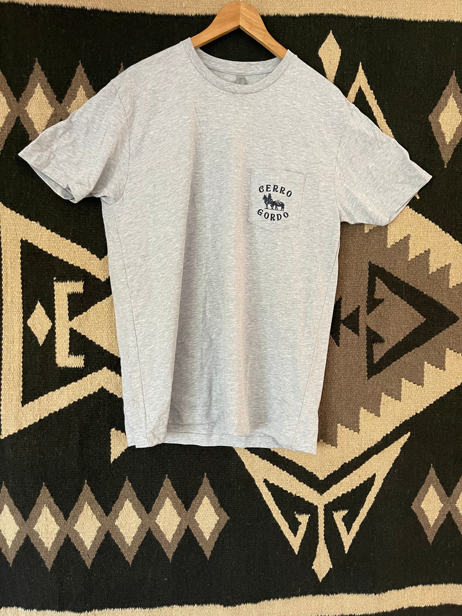 100% cotton Cerro Gordo pocket Tee featuring vintage Cerro Gordo cowboy and horse imagery.