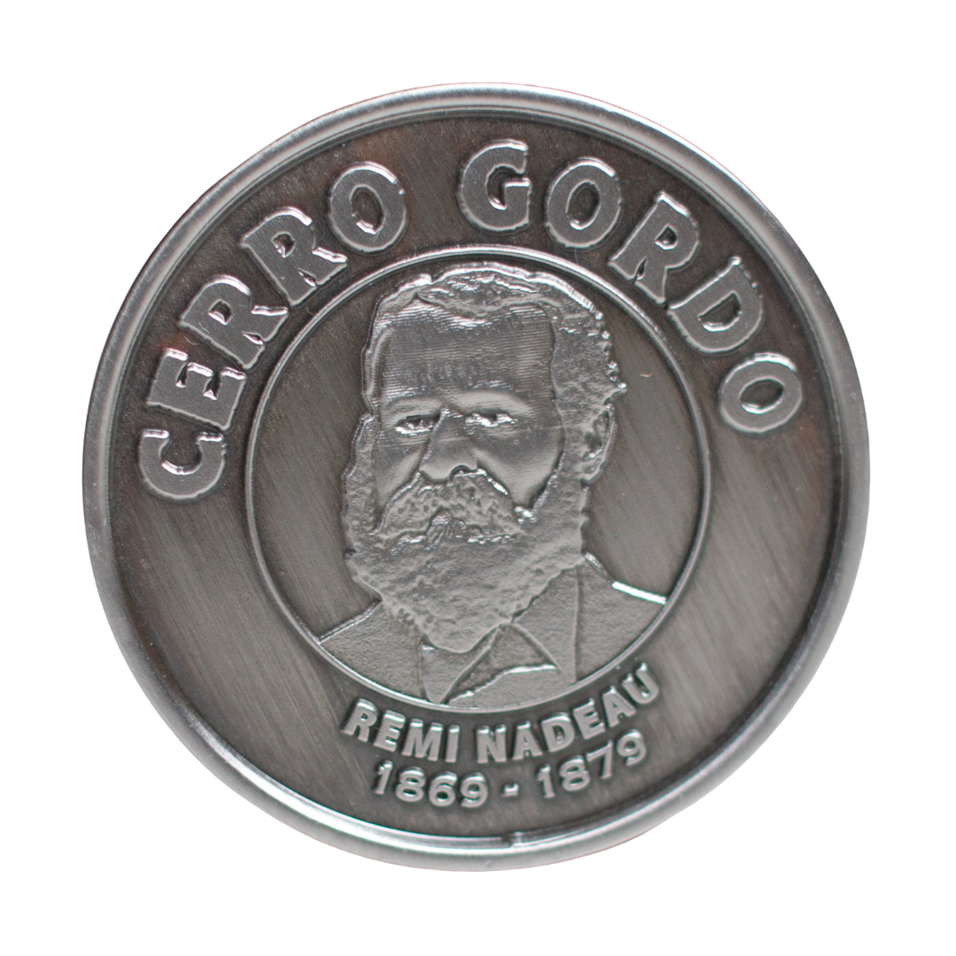 Collectible Cerro Gordo medallion featuring Remi Nadeau.